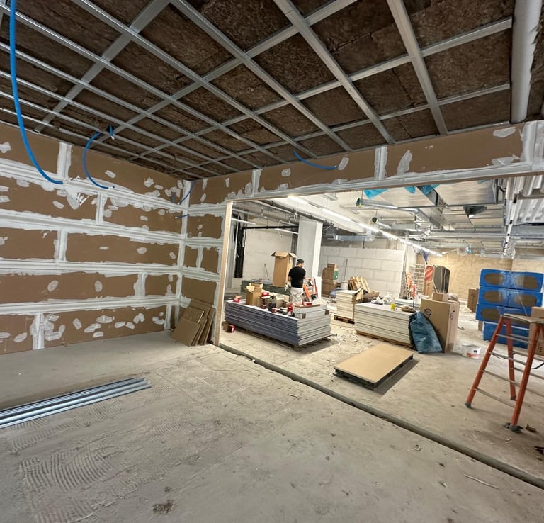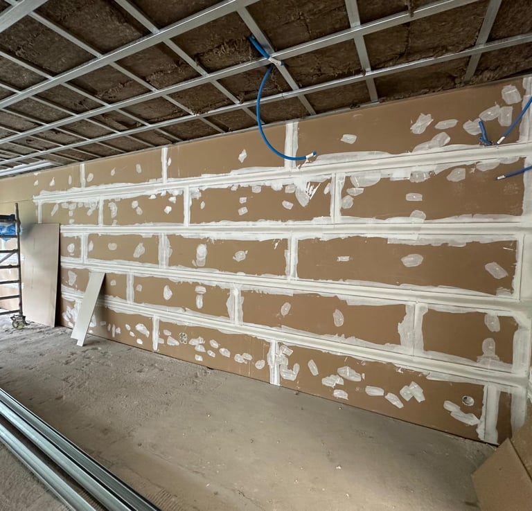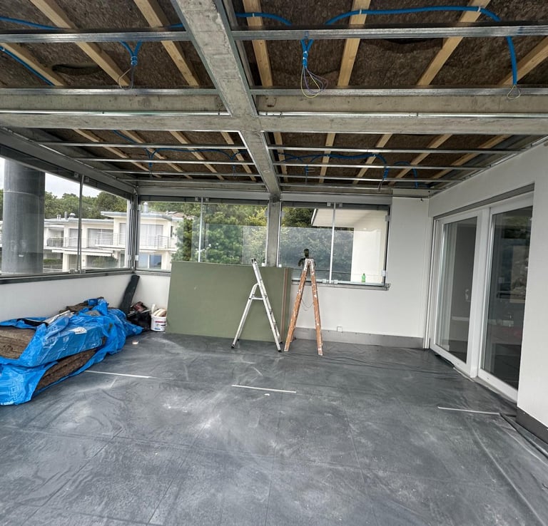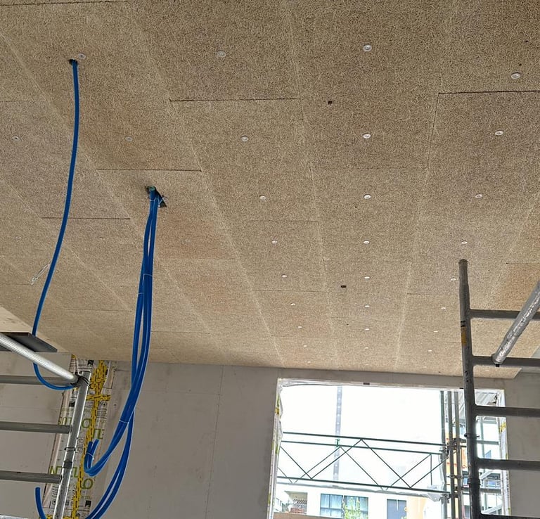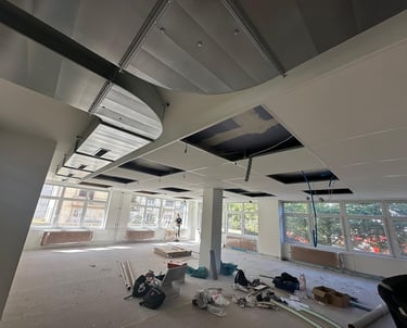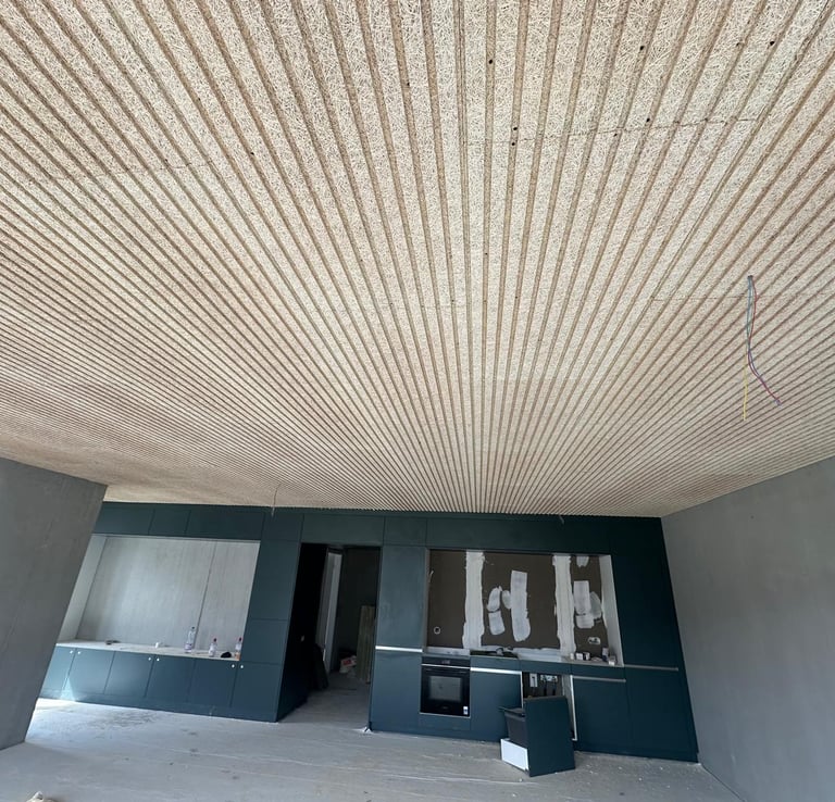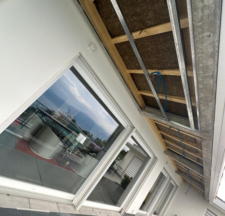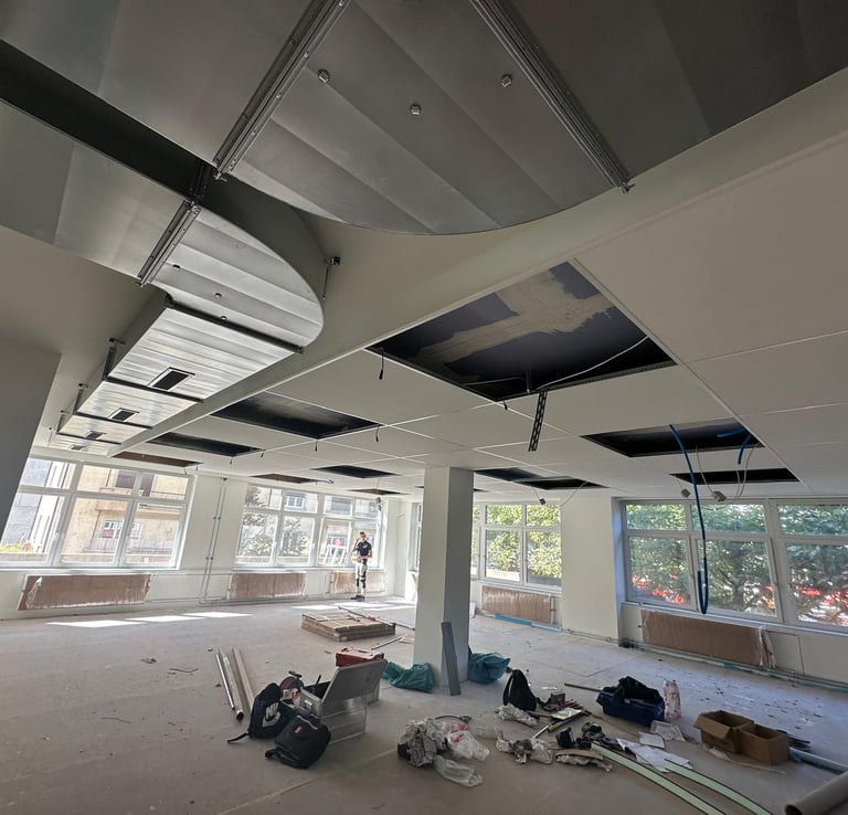 Réalisation d'un faux plafond isolant intégrant des panneaux acoustiques et thermiques pour optimiser le confort intérieur. Conçu pour une isolation performante, il réduit efficacement les nuisances sonores tout en améliorant l'efficacité énergétique du bâtiment. Un choix idéal pour un environnement paisible et durable.